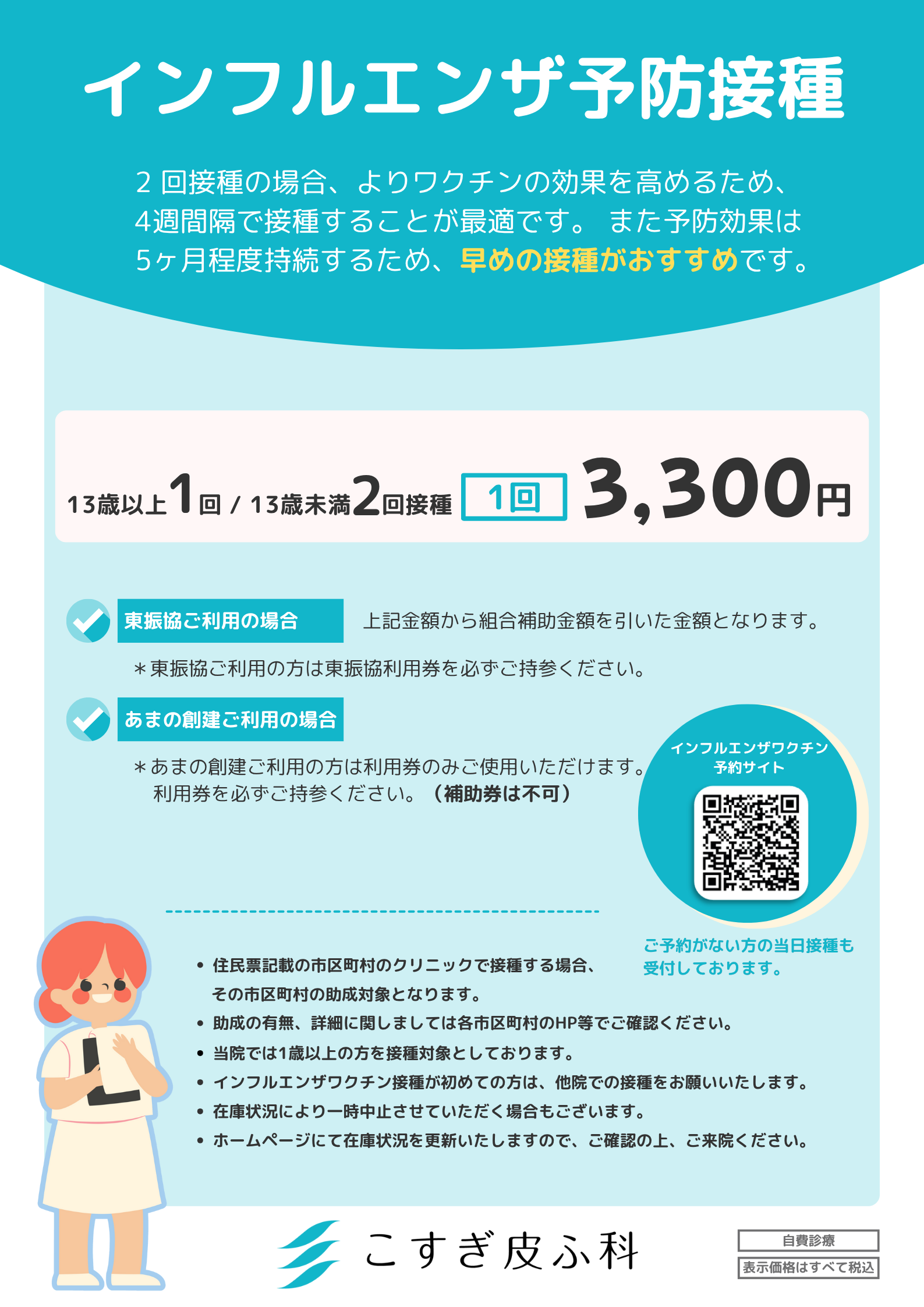 11/1(土)以降も接種1回につき3,300円といたします。